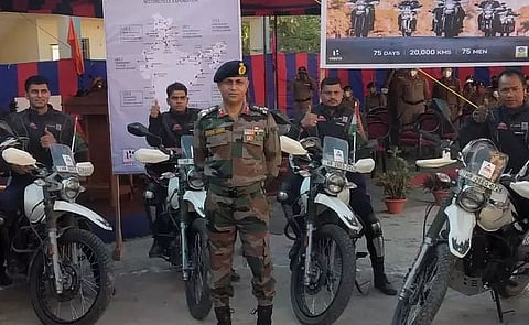 Tezpur: As the nation celebrates 75 years of Independence, the Prime Minister of India has envisioned the celebrations of the year as "Azadi Ka Amrit Mahotsav". Commemorating the momentous occasion, Border Roads Organization under the able guidance of Lt Gen Rajeev Chaudhry, Director General, Border Roads, had taken a challenging task of Pan India Motorcycle expedition to cover about 20,000 kms in over 75 days by "BRO Karamyogis". This expedition was flagged off by Defence Minister Rajnath Singh on October 14 from Delhi. Since then these daredevils have covered 5141 kms by covering various important as well as difficult mountain passes like Pang, Leh, Kargil, Srinagar, Prayagraj, Varanasi, Nathula, Guwahati etc.