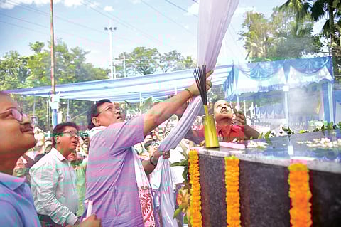 Kokrajhar: BTC chief Pramod Boro on Tuesday unveiled a grand statue of the legendary “Bard of Brahmaputra” Dr. Bhupen Hazarika, at Sudhakantha Kanan in Kokrajhar, marking the death anniversary of the iconic cultural figure. The event also saw the launch of a souvenir titled ‘Bhupendra Baibhav’ in his honour.