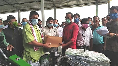 TINSUKIA: Bolin Chetia, MLA of Sadiya and also chairman of Assam Gas Company, distributed power tillers under the Department of Welfare of Plain Tribes & Backward Classes to 124 beneficiaries of Sadiya subdivision at Chapakhowa on Sunday.