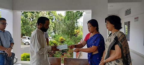 HAFLONG: State Power, Mines & Minerals Minister Nandita Gorlosa on Friday handed over cheques amounting to Rs 2 lakh from the Chief Minister's Public Emergency Fund to the next of kin (NOK) of the two Territorial Army jawans - Balaram Sharma from Umrangso and Priyam Dutta from Haflong - who lost their lives in a massive landslide in the Noney district of Manipur that occurred on June 29, 2022.