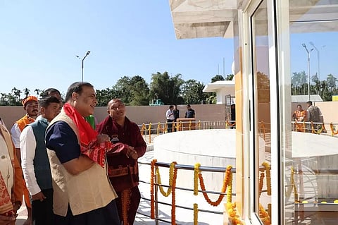 GUWAHATI: Chief Minister Himanta Biswa Sarma today visited Lokhimon Ashram at Dolamara in Karbi Anglong district and attended a congregation meeting. He also paid a visit to the cemetery of Kurusar Lokhan Engti Hansek, the founder of Lokhimon Faith, and paid his rich tributes. He also unveiled a statue of Kurusar Lokhan Engti Hansek at Dolamara. He at the same time laid foundation for the third main temple of Lokhimon Ashram (Sok-Phe Ah Aklam).