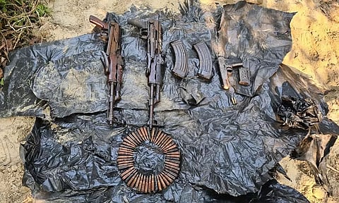 ADGP (Law & Order) G P Singh wrote on Twitter, "Continued offensive against unlawful weapons – On 12.02.2021 morning @chirangpolice recovered two AK Rifles, One M20 Pistol with ammunition from inside Manas National Park located in Amlaiguri village under Panbari PS. @assampolice @DGPAssamPolice @CMOfficeAssam @HMOIndia"