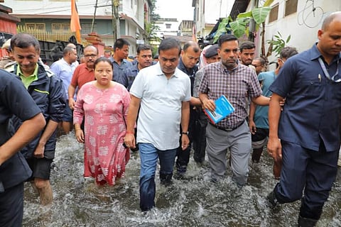 DIBRUGARH: Chief Minister Himanta Biswa Sarma visited Dibrugarh town on Friday, which has been waterlogged for the last nine days.