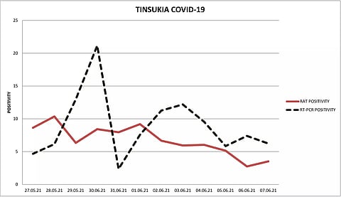 TINSUKIA: Though COVID positivity rate in Tinsukia district has indicated a declining trend, closely nearing to optimum level, rural and tea garden belt still remain very vulnerable even as RT PCR rate in much higher than that of RAT positivity.