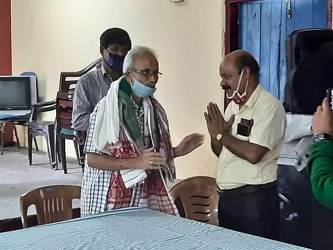 BONGAIGAON: Axom Krishti Bikas Sangha and North Bongaigaon Senior Citizens' Association felicitated eminent cultural worker Amar Das on Wednesday. Hosting the felicitation ceremony, Basanta Kumar Choudhury said that Amar Das was not only a culture worker of Bongaigaon area, but also a poet, a writer and actor. "Due to ailments he is bed-ridden nowadays. Hence we arranged a felicitation programme for him today," said Choudhury. The meeting was presided over by Gopeswar Talukdar, retired Professor of Bongaigaon College, where several noted persons were present. Two other organizations - Goriya-Moriya Deshi Jatiya Parishad and Bongaigaon district Xahitya Xabha - also felicitated Amar Das on the occasion.
