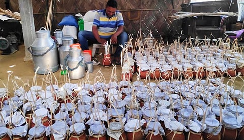 DEMOW: Amidst the protest against the Citizenship (Amendment) Act and with one day left for Magh Bihu or Bhogali Bihu, people were seen preparing for Magh Bihu in Demow and its surrounding areas on Monday. Rubul Kalita, a resident of Saragua Adarsha Kalita Gaon near Demow, is preparing curd for Magh Bihu. Rubul Kalita is in this business for the last 20 years and the curd is sent to various places of the State. The rate of the curd starts from Rs.200 up to Rs.500. On the other hand, the bhelaghars have been made ahead of Magh Bihu.