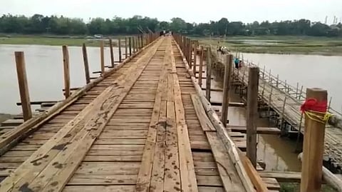 Due to the rising water level and strong current of the River Puthimari, the only wooden bridge in village Madhukuchi is under threat. This bridge is the only mode of communication for several villagers of the area. The villagers have come out to clear the deposits in the pillars of the bridge in order to save the wooden bridge. The local public closed the bridge for the public with barricade. The people have urged the PWD to repair the wooden bridge before it is washed away. They are spending sleepless nights as the water level is increasing continuously.