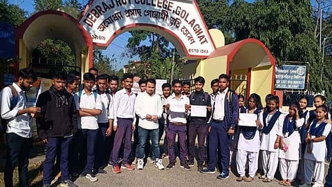 GOLAGHAT: The students of Debraj Roy (DR) College of Golaghat staged protest in front of the college on Tuesday to protest against the Citizenship (Amendment) Bill.