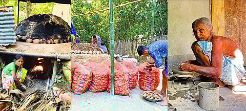 The clay work is a tradition of the locality where 150 families earn their livelihood by selling items like curd pot, flower tub, dhuna pot, including the traditional earthen lamps made from clay.