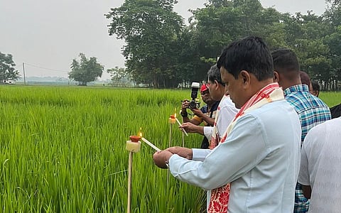 DHUBRI: Dhubri District Agriculture Office celebrated Kati Bihu in a unique way at Madhusoulmari village of Dhubri district on Thursday. During the programme more than ten progressive farmers from Madhusoulmari were felicitated and given horticulture kit, vermi bed by the department. At the end of the programme, traditional cultural practice by offering prayers on tulsi plant and lighting of earthen lamps and “Akash Bonti” on bamboo stands all around the paddy field were done.