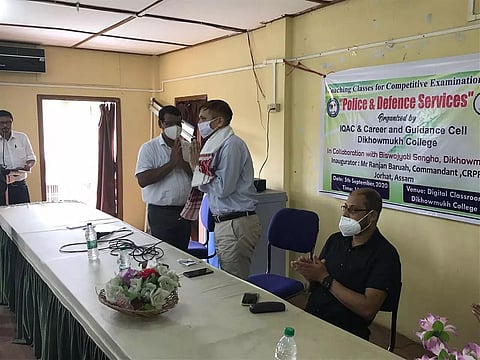 GAURISAGAR: Dikhowmukh College, one of the higher educational institution in greater Dikhowmukh area on the outskirts of Gaurisagar in Sivasagar district organized a 15-day-long career counseling workshop in association with Bishnujyoti Yuvak Sangha on Police and Defence Services under the aegis of college IQAC and Career guidance cell. The workshop was formally inaugurated by Ranjan Baruah, Commandant of CRPF, Jorhat. Addressing the participants he gave some tips and techniques how to get success in competitive examinations. Dr. Jayanta Madhab Dutta, Professor, Department of English, Bishnudev Janajati College and noted translator took part as a guest of honour. Earlier Pabitra Kumar Dutta, Principal in Charge of the college welcomed the guests and gathering. Dr.Romen Kalita, Associated professor of the college explained the objective and planning of the workshop. Earlier Dr. Ranjit Kumar Baruah, Coordinator of IQAC of the college anchored the whole.