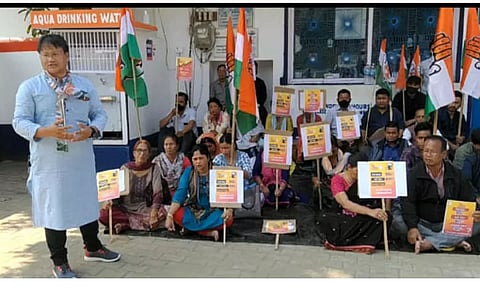 The Congress party workers, led by DCC president Nirmal Langthasa, criticized the BJP's non-fulfillment of pre-poll promises, especially about price rise which has forced the people of the country to suffer a lot.