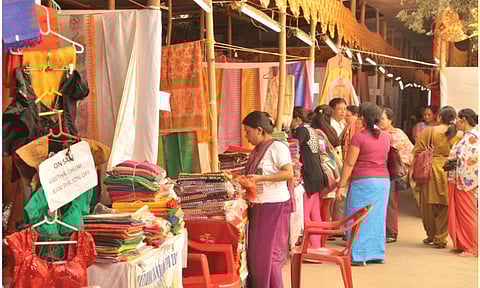 Altogether 15 stalls have been put up by SHGs, Primary Weaving Cooperative Societies and Weavers' Extension Service Units of the district.