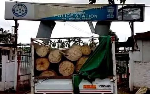 TINSUKIA: A night patrolling team of Doomdooma police led by SI Chittaranjan Buragohain intercepted a timber-laden truck bearing no AS 23 CC 5869 at Doomdooma bypass and seized huge quantity of logs on Thursday night. Police sources said the truck was coming from Kakopathar side and was proceeding towards Makun when it was intercepted. Two occupants in the truck, namely Sunkon Moran alias Keteng and Akash Moran, were taken into custody. Meanwhile, Doomdooma forest took possession of the seized logs along with the vehicle.