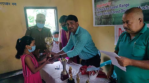 More than 35 students of the locality participated in the drawing competition which was inaugurated by Pranab Das, ranger of Kumarikata Forest range office. The competition was held on the subject of natural beauty and a picture of the participant's choice. After the drawing competition a meeting-cum prize distribution ceremony was held at the school hall. The meeting was conducted by Pranab Das, Ranger of Kumarikata, where Abbas Dewan, ACF of Baksa Forest Division, Madan Mohan Bhatt, Assistant Commandant of 64 Bn SSB, Darrangamela, SSB Inspector Nokul Ram of Patkijuli Camp, Headmaster of No 1 Paharpur ME School Raban Ishawary, social worker Hom Giri along with forest personnel Biren Boro.