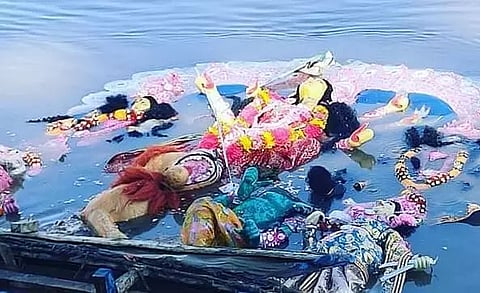 There has been a rise of pujas this festival, recording in all 445 committees applying for Durga Puja as against 350 last year in and around Silchar town alone. The celebration was peaceful with security arrangement at its place. With three day festivity coming to end, it was time to bid farewell to Goddess Durga. With no procession allowed and restricted use of microphone, the idols were carried on vehicles accompanied by select committee members and immersed accordingly.