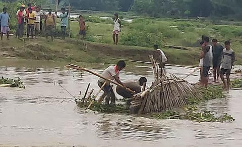 The local people of the area on both sides of the river then made a bamboo bridge over the river and continued communication. Thousands of common people in many villages as well as school-college students and patients were stopped for their way in the first flood of the year today. At the same time, Chief Minister Dr Himanta Biswa Sarma and BTC chief Pramod Boro have been requested to construct an RCC bridge on Dwarkuchi- Rangapani-Kaurbaha road by ABMSU general secretary Taison Hussain, Tamulpur district ABMSU president Badruddin Khan as well as local people in the area.