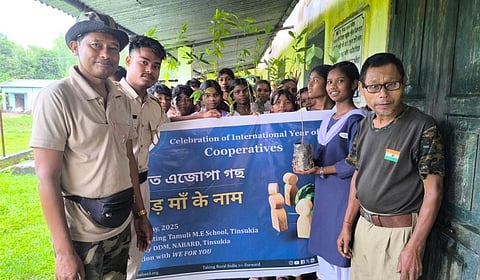 Lakyahira Gogoi, Assistant Registrar of Cooperatives, Babul Das, ABM Apex Bank, Barun Biswas, District Development Manager (DDM), NABARD, and forest officials under Digboi division participated in the programme planting fruit-bearing saplings and native trees along with the students.