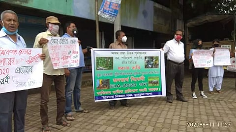 DOOMDOOMA: In response to the call by the central committee of Ellora Vigyan Mancha (EVM) to oppose the draft Environmental Impact Assessment (EIA), 2020, all over Assam, its Doomdooma branch also opposed the draft on Tuesday at Gandhi Chowk in Doomdooma town by maintaining social distancing.