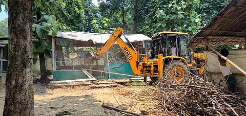 The places where the eviction action took place are near office of the food corporation of India and district transport office. A wall of the hotel Ronee Plaza at the same place was also downed by using excavators.