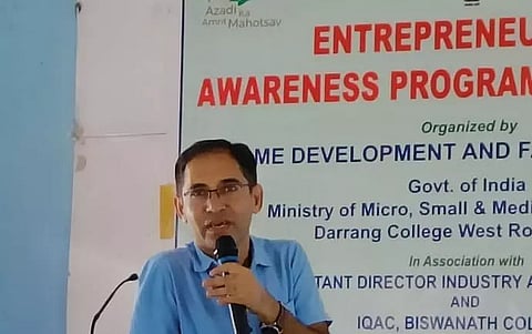 BISWANATH CHARIALI: I-MSME Development and Facilitation Office under Ministry of Micro, Small and Medium Enterprises, Government of India organized a daylong Entrepreneurship Awareness Programme on Friday at Biswanath College, Biswanath Chariali in association with Department of Industry and Commerce, Biswanath and IQAC of Biswanath College. College Principal Dr C Sharma delivered the welcome address.