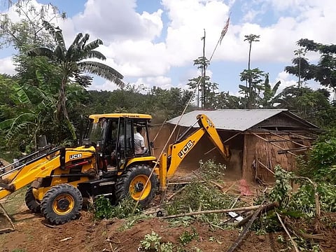 The plot of land allotted to Sericulture department was re-allocated to Law department for construction of judicial court in 2012, later to remove the encroachment a litigation followed which went up to the extent of contempt of court case; ultimately as per the Guwahati High Court's order no WP(C)/722/2022 the council authority carried out the eviction drive today.