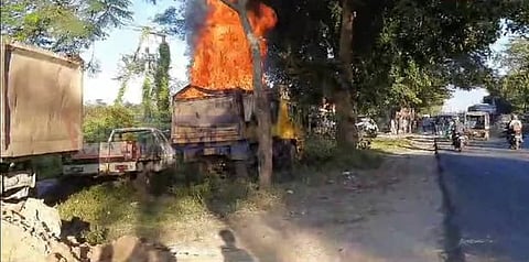 According to eyewitnesses, the 3 persons were seen doing welding jobs on the top of the dumper bearing number AS 09AC 4834 at Candy Garage. The massive explosion flung all the persons in the air. While 2 persons escaped with injuries, one person swung into a nearby tree and fell on the NH road and died instantly. The deceased has been identified as one Ali.