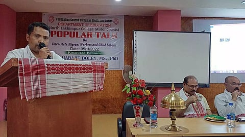 He said so while taking part as the resource person of a popular talk, organized by the Department of Education, North Lakhimpur College (Autonomous) on a topic 'Inter-State Migrant Workers and Child Labour'. The event was organized as part of the Foundation Course on Human Rights and Duties, being implemented by the Department of Education of the college. The event kick-started with the lighting of earthen lamp in front of the portrait of Sudhakantha Dr Bhupen Hazarika as a mark of homage to the bard on the occasion of his death anniversary. It was followed by a Borgeet by student Geetashri Dutta. Course Nodal Person-cum-Assistant Professor of the Department of Education, Dr Binod Chetia, explained the objective of the programme. Dr Biman Chandra Chetia, the Principal of the college, delivered the welcome address. In connection, he threw light on the extent of miserable plights of the migrant workers and child labourers which came into light during the COVID-19 pandemic and lockdown period.