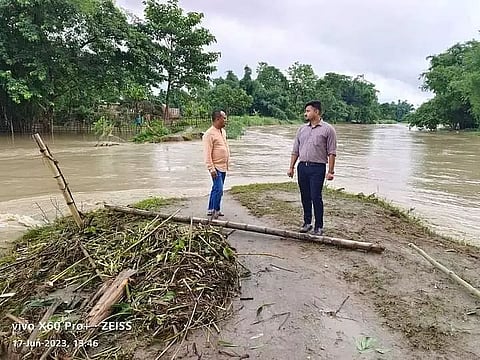 Moreover, villagers of these areas said that they demanded immediate repair of the old embankment of Noa River when several portions were ravaged by floods on the west and east sides of the river in Kalaigaon in 2022. But the authority concerned has not taken any step to repair the embankment. So, the embankment gave away under the pressure of flood waters and it has been damaged again. Knee-deep water was also seen on the main road, namely Mekenzi at Geruwa where the communication link has been cut-off totally.