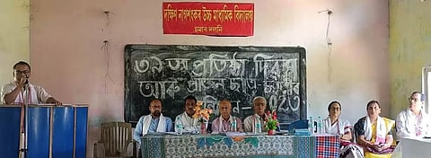 Another speaker Churamoni Sarkar, an assistant teacher of Jamuguri Adarsha HS addressed the gathering. The foundation day was organized by the school in collaboration with the alumni association. Hemsagar Sarma, Damudar Baral and Premlal Dahal addressed the session on behalf of the alumni.