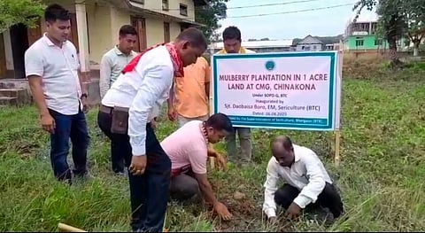 The drive was led by BTR’s Eri Mission executive member, Daobaisa Boro, who emphasized the importance of encouraging women, especially from the tea garden areas, to engage in Eri sericulture by utilizing their unused land for plantation. The distributed host plant is considered vital for Muga cultivation, an integral part of Assam’s silk heritage.