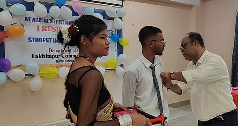 LAKHIMPUR: The maiden fresher's social and students' induction programme of the Department of English, Lakhimpur Commerce College was held on Thursday. The programme commenced with the inauguration of the wall magazine of the department by Dr. Lohit Hazarika, Principal of the college.