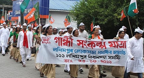 LAKHIMPUR: Gandhi Sankalpa Yatra, a nationwide programme initiated by the BJP-led Union Government in connection with the 150th birth anniversary of Mahatma Gandhi and to ensure a clean and plastic-free environment, was launched in Dhakuakhana LAC on Saturday.