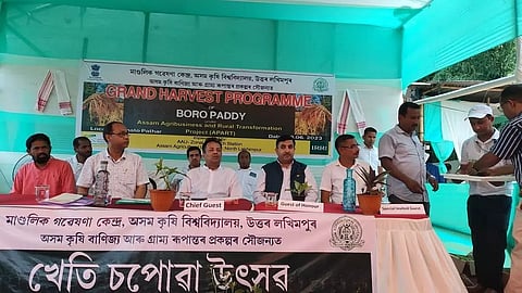 LAKHIMPUR: A programme on ‘Grand Harvesting of Boro paddy’ was organized under Assam Agribusiness and Rural Transformation Project (APART) earmarked under Sali paddy (2023-24) by AAU-Zonal Research Station, North Lakhimpur in collaboration with International Rice Research Institute on Thursday at Khato Pathar village under Telahi Development Block.