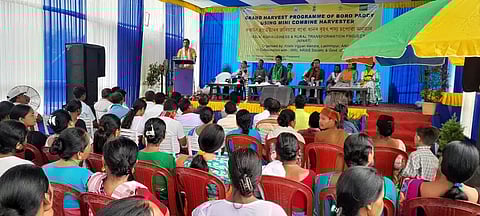 LAKHIMPUR: A ceremonial programme on ‘Grand Harvesting of Boro Paddy’ was organized under the aegis of Assam Agribusiness and Rural Transformation Project (APART) using Mini Combine Harvester by Krishi Vigyan Kendra, Lakhimpur in collaboration with International Rice Research Institute on Wednesday at Sampora Pomua village under Ghilamara Development Block of the Lakhimpur district.