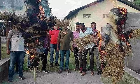 The activists of AASAA Udalguri chapter also burnt the effigies of Tezpur Lok Sabha MP Pallab Lochan Das and Labour Minister Sanjay Kishan to register their protest.