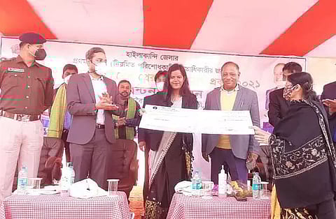 HAILAKANDI: Environment and Forest, Fisheries and Excise Minister Parimal Suklabaidya ceremonially distributed cheques to women borrowers under the Assam Micro Finance Incentive and Relief Scheme in Hailakandi district on Monday.