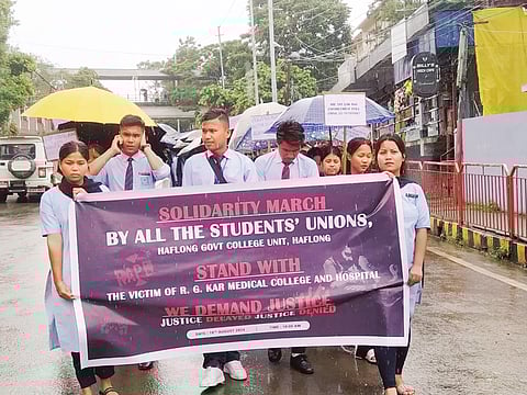 Haflong: Demanding justice for the victim of RG Kar Medical College and Hospital, all the students’ unions of Haflong Government College organized a solidarity march at Haflong on Monday.