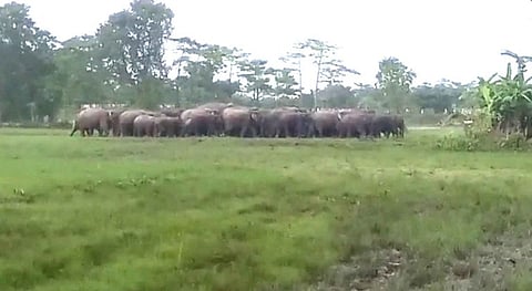 Majuli: A herd of 70-80 wild elephants entered the Salmara village in river island Majuli and caused large scale damage to crops and to the residences of at least five people in the area.