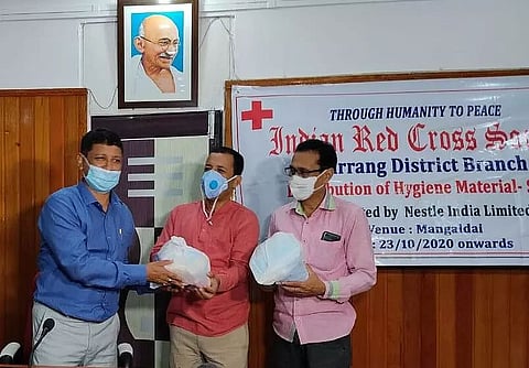The members of Darrang district branch, led by president-cum-Deputy Commissioner Dilip Kumar Borah, continued their benevolent social service during the country-wide lockdown. The Red Cross Society, expressing their solidarity with the members of the media fraternity, who are also the frontline COVID warriors, and in appreciation of their service in the hour of crisis, offered some 'gifts of love' in the form of packets containing gift items to the media persons of Darrang district.