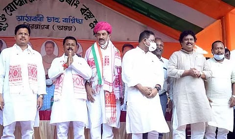 DEMOW: With five days left for the bye-election in Thowra constituency, an election campaign meeting was organized in Demow Athabari Tea Estate Mukti Juddhya Malati Orang Auditorium on Sunday where Jitendra Singh, general secretary of Nikhil Bharat Congress Committee, campaigned for Manuranjan Konwar, the INC candidate for the bye-election in Thowra constituency.