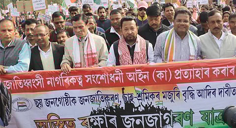 JORHAT: Activists of Assam Pradesh Congress Committee (APCC) in association with the Jorhat district Congress committee stormed the streets of Jorhat after a rally was organized at the Jorhat Stadium complex on Tuesday in protest against the Citizenship (Amendment) Act.
