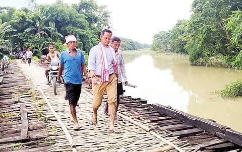 GAURISAGAR: MP of Jorhat constituency Gaurav Gogoi visited the flood-hit areas of Konwerpur on the outskirt of Gaurisagar under Sivasagar revenue circle in Sivasagar district. MP Gogoi was accompanied by Nazira MLA-cum-Leader of Opposition Debabrat Saikia. They visited the historic Ajanpir Dargah, No 1 Gopalpur village No 2 Gopalpur village , Saraguri, Ofala, Charaiporia Gatanga, Chungia, No.1 Bokabil village, No.2 Bokabil village, Chiripuria, Na-Katani Koijan, Na-Katani Phakum and other areas. Gogoi also visited flood affected Santipur High School. The school fraternity handed over a memorandum to him highlighting the damage of school infrastructure by flooding water. The MP was also welcomed by the local people at Nakatani Tinali and handed over a memorandum for setting up a rural sports project in Nakatani area under Santipur GP. Receiving the memorandum, MP Gaurav Gogoi said that such sports project is very much needed in rural areas.