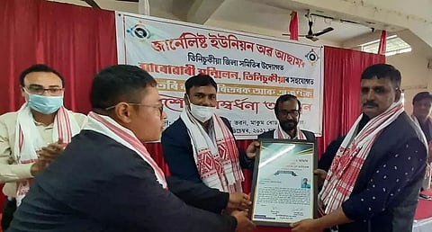 TINSUKIA: The Tinsukia district committee of Journalists' Union of Assam (JUA), in association with Marwari Sanmilan, felicitated paper hawkers and agents in a special programme held at Manab Kalyan Prarthona Bhavan, Makum Road in presence of a distinguished gathering.