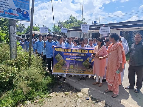 TINSUKIA: Krishi Vigyan Kendra (KVK), Tinsukia observed ‘Parthenium Awareness Week’ from August 16 to August 22 by organizing a series of events. A rally and awareness programme, in collaboration with Makum College, took place on August 21, where Dr Kripal Borah (SMS, Soil Science) highlighted the harmful effects of Parthenium on agriculture, non-cropped areas, human health, the environment, and biodiversity.