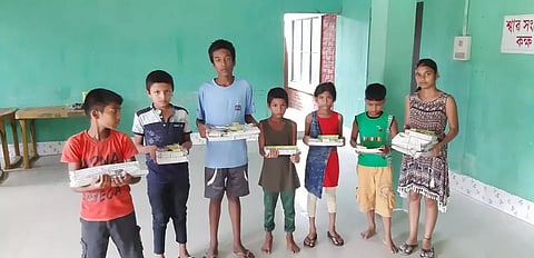 In the memory of freedom fighter Bhagwati Prasad Ladia, a set of new books was provided to the Class X student. Apart from this, Pradeep Nowka, president of Golaghat Marwari Sammelan, and secretary Ram Manohar Binnani got information that a woman's sewing machine was damaged in the accident. So in order to provide help her, a sewing machine will be provided in the upcoming event of the Sammelan.