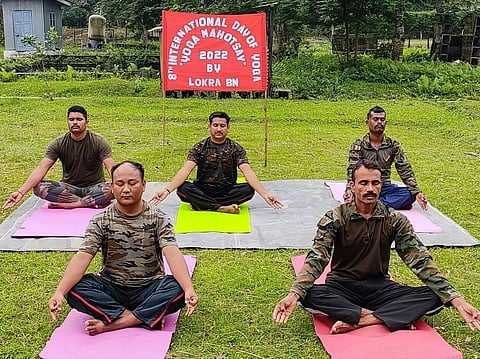 JAMUGURIHAT: Lokra Battalion of 21 Sector Assam Rifles, under the aegis of Inspector General Assam Rifles (East), organized Yoga Utsav to commemorate the 8th International Day of Yoga at various locations of Itakhola, Balipukhri and Dhekiajuli in the districts of Biswanath Charali and Sonitpur, Assam on Tuesday. The event was aimed to give wider publicity of the International Yoga Day and to educate all as to how yoga helps in improving the health and the lifestyle to tackle the stressful and busy routine. The event was attended by the 32 combatants of the Lokra Battalion.