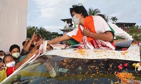 She was escorted to her village, a distance of nearly 55 km from Dimapur, in a convoy of four-wheelers and two-wheelers as people lined up on both sides of the road to greet her.