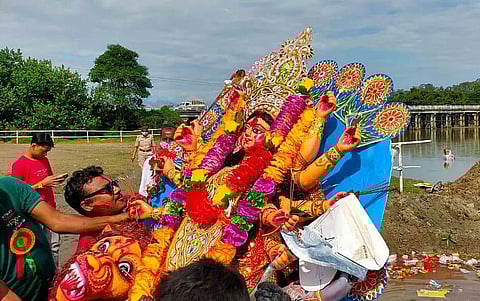 LAKHIMPUR: The low key celebration of Durga Puja rituals and festivities concluded in Lakhimpur district with Vijaya Dasami on Monday. With it, the devotional environment with blended notes of the Durga Vandana in 38 Puja mandaps across the district fell silent for a year.