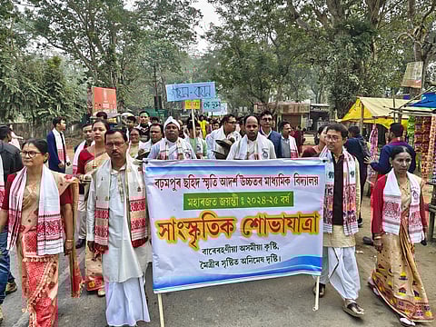NAGAON: The 6th foundation day of Lutani Chapari Jatiya Vidyalaya was celebrated with great enthusiasm and fervour on Friday. The event was marked by a cultural procession, where students showcased their talents and also made awareness against superstition as well as child marriage.